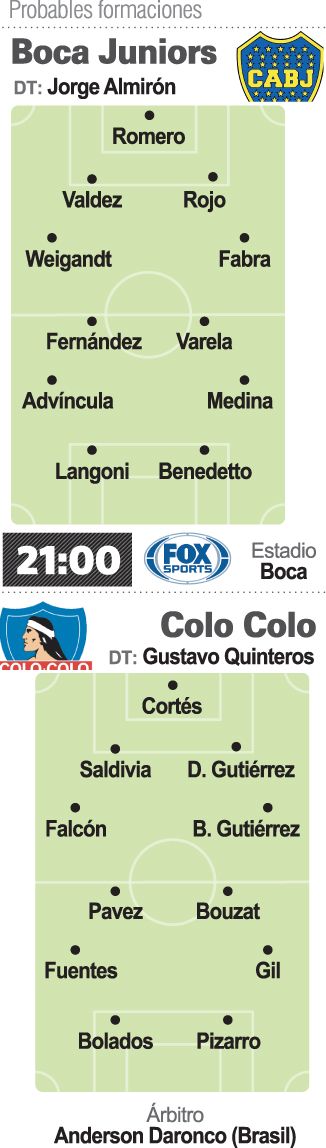 Boca recibirá hoy (21 horas, por Fox Sports) dar un paso decisivo hacia la clasificación a octavos de final de la Copa Libertadores, cuando reciba a Colo Colo de Chile por la quinta fecha del Grupo F, que el "Xeneize" lidera con 7 puntos, junto con el Deportivo Pereira de Colombia.