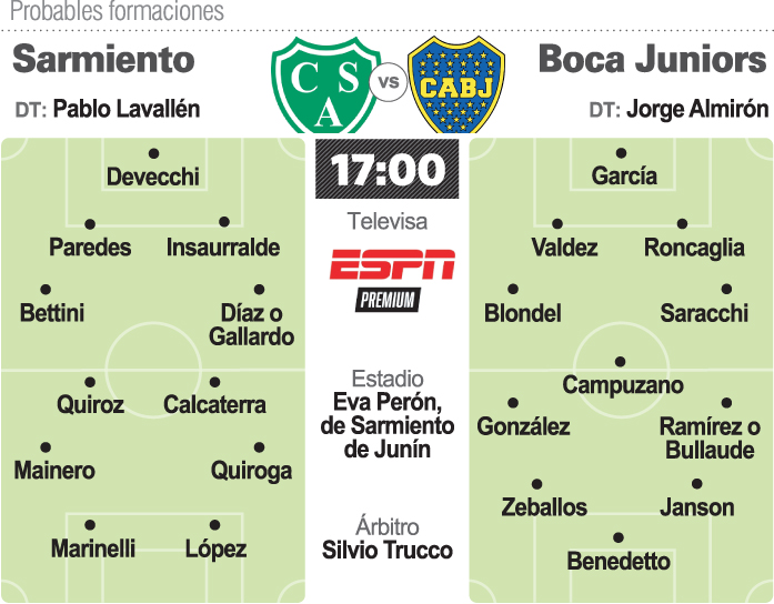 Boca Juniors, que inició con una victoria su campaña en la Copa de la Liga Profesional de Fútbol, visitará hoy a Sarmiento de Junín, que también ganó en su presentación, en un partido válido por la segunda fecha de la Zona B que los "Xeneizes" asumirán con una formación alternativa debido a su participación en la Copa Libertadores. El encuentro se jugará desde las 17 en el estadio Eva Perón, de Sarmiento de Junín, en la ciudad más importante del noroeste bonaerense, será arbitrado por Silvio Trucco y televisado por ESPN Premium.