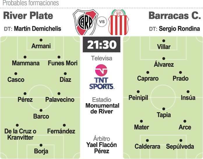River Plate, que tras haberse consagrado campeón de la Liga Profesional de Fútbol (LPF), debutó en la Copa de la Liga con una derrota ante Argentinos Juniors, intentará sumar sus primeros tres puntos cuando reciba hoy a Barracas Central, en un encuentro válido por la segunda fecha de la Zona A. El encuentro se jugará desde las 21 en el estadio Más Monumental, de River, en el barrio porteño de Núñez, será arbitrado por Yael Falcón Pérez y televisado por TNT Sports.