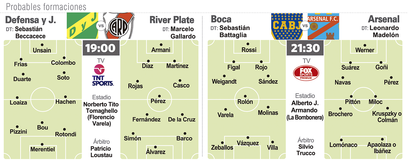 Por su lado y también apuntando a la Copa Libertadores, River Plate visitará a Defensa y Justicia en uno de los partidos más atractivos que puede ofrecer el certamen tomando en cuanta lo que proponen ambos equipos en el campo de juego, por la octava fecha de la Copa de la Liga Profesional de Fútbol (LPF). El encuentro, por la Zona A, se jugará en el estadio Norberto Tomaghello, ubicado en la ciudad bonaerense de Florencio Varela, hoy desde las 19, con el arbitraje de Patricio Loustau. Los dos tienen la mente puesta en el debut en las copas: River en la Libertadores el martes frente a Alianza Lima de Perú y Defensa en Sudamericana contra Antofagasta de Chile, también fuera de casa.