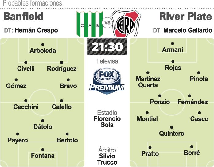 En tanto que River visitará a Banfield. La parcialidad de River contará con 7 mil localidades en la tribuna visitante, volviendo a Banfield tras casi más de 10 años. El conjunto de Gallardo, levantó claramente su nivel durante sus últimas presentaciones, al punto que lleva un invicto de tres juegos, destacándose el triunfo contra el puntero Racing. Para este partido, el técnico Gallardo parará el mismo equipo que igualó en Rosario. Banfield, dirigido por Hernán Crespo, apenas consiguió un éxito en sus últimos seis partidos y buscará la recuperación frente a su gente. Los otros dos encuentros de la jornada serán los que protagonices desde las 17,10 Talleres ante Huracán y Rosario Central ante Tigre.