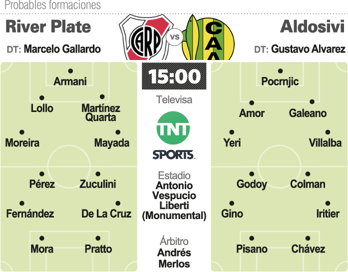 River Plate, con un equipo integrado por suplentes salvo la presencia del arquero Franco Armani, será local ante Aldosivi de Mar del Plata en otro de los partidos que se jugarán hoy por la Superliga.