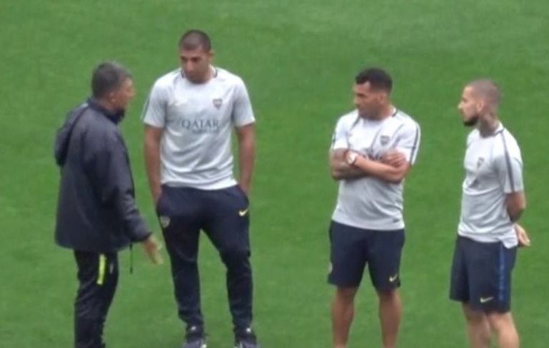Previamente, el DT y los delanteros Carlos Tevez, Ramón Abila y Darío Benedetto recorrieron el campo de juego de La Bombonera.