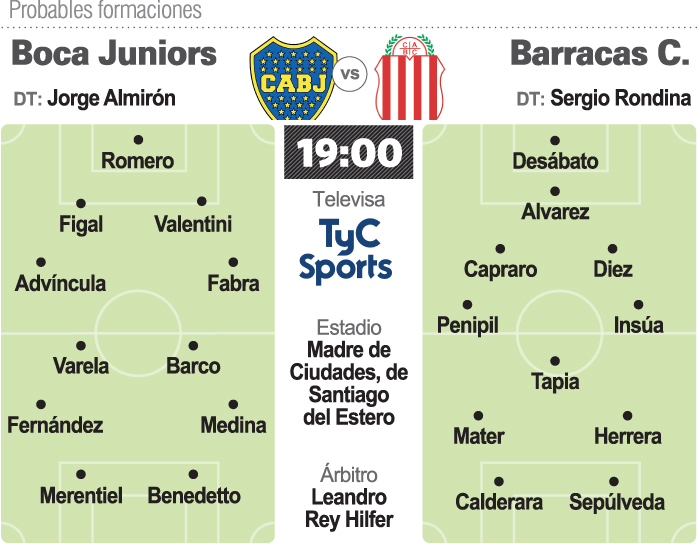 El equipo "Xeneize" superó en la ronda anterior a Olimpo de Bahía Blanca, del ‘Federal A’, mientras que su rival, Barracas, eliminó a Estudiantes de Buenos Aires, de la Primera Nacional, a priori tendra de titular al defensor sanjuanino, Francisco Álvarez. Mientras que el atacante, Alan Cantero, estará entre los suplentes.