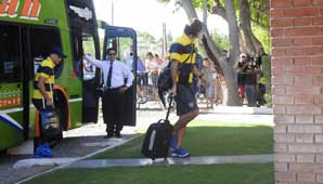 San Juan, 16 de marzo.- No vino Riquelme, ni Clemente Rodríguez, ni Cvitanich y tampoco Rivero, pero los hinchas xeneizes igual fueron a recibir a Boca al aeropuerto y también al hotel Viñas del Sol en Santa Lucía.