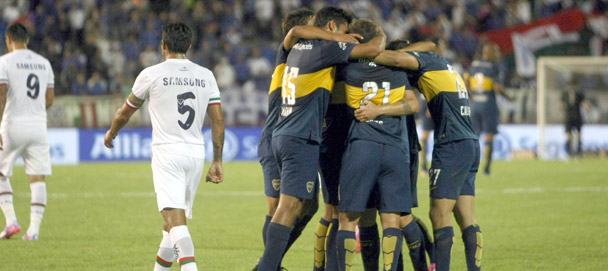 Boca, si bien dependió de arrestos individuales, tuvo un remate de Jonathan Calleri a los 27m. que contuvo Sebastián Sosa y un cabezazo errado César Meli a los 43m. como las llegadas más claras. La apertura del marcador llegó a los 33m., cuando el lateral izquierdo Nicolás Colazo, de buen partido, remató desde la banda izquierda cerca del vértice del área grande, y su zurdazo se clavó en el ángulo superior derecho de un Sosa que nada pudo hacer por la potencia y la precisión del remate.