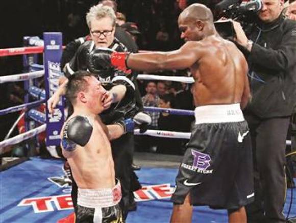 Bradley recibió un duro castigo de su rival en el primer y el segundo round y cayó en ambos casos, pero réferi Pat Russell dictaminó que el campeón había resbalado.