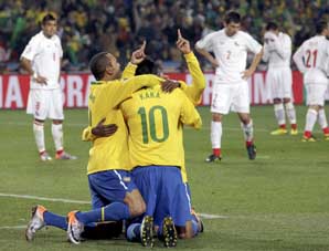 Buenos Aires, 28 de junio.- El seleccionado de Brasil goleó hoy a su par de Chile, conducido por el argentino Marcelo Bielsa, por 3 a 0 y se clasificó a los cuartos de final del Mundial de Sudáfrica 2010.