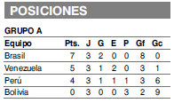 Y en el descuento, el arquero derribó en el área a Gabriel Jesús, pero Gallese luego le contuvo a su derecha el penal al propio delantero del Manchester City. Brasil se lució en San Pablo y llega con gran impulso a los cuartos de final en su país, en los que se medirá con uno de los mejores terceros (B o C). Perú, con el triunfo de Venezuela ante Bolivia, quedó tercero y deberá esperar hasta el lunes próximo para saber si clasifica o no a los cuartos de final como uno de los dos mejores de esa posición.