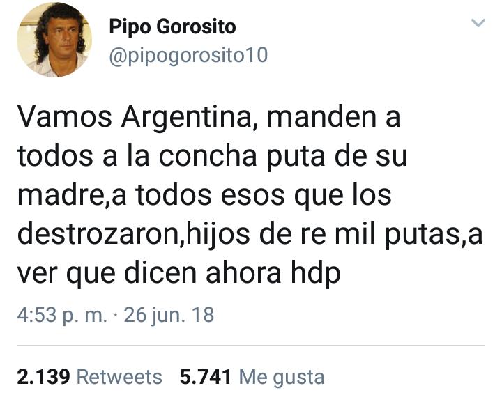 Sin medirse, utilizó su cuenta de Twitter para insultar duramente a todos los que criticaron a Messi y compañía.