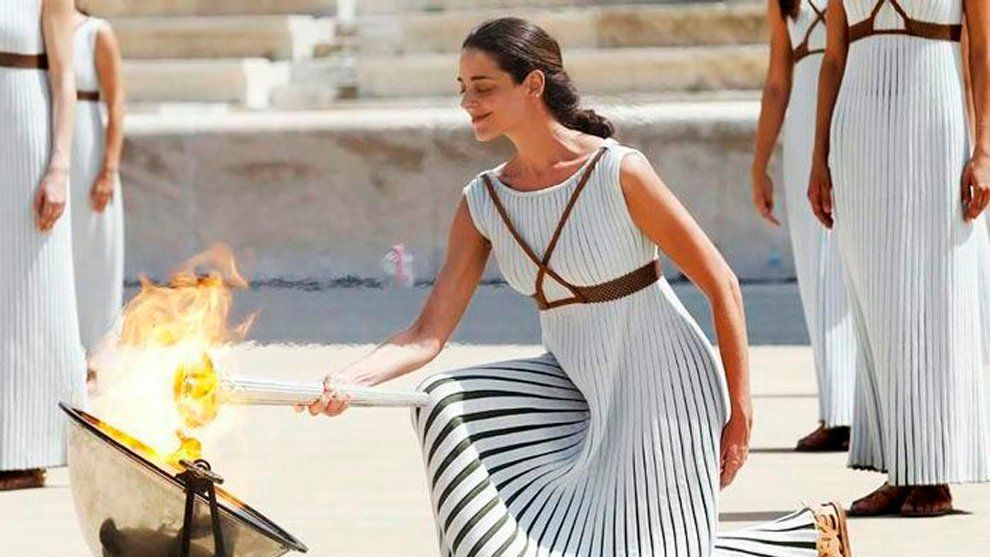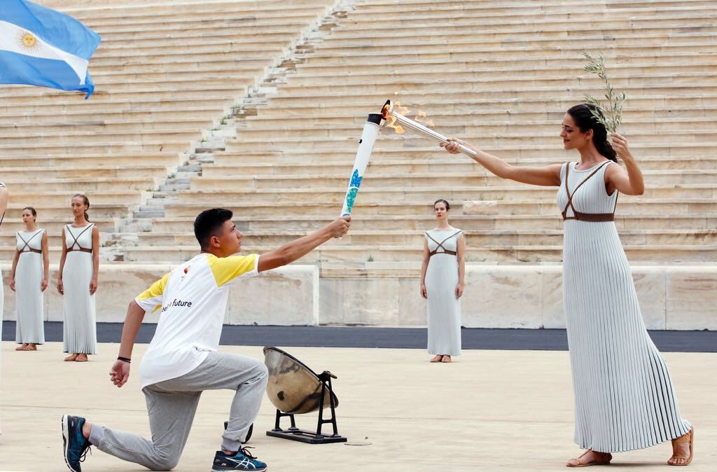 El mismo escenario que vio surgir a los Juegos Olímpicos de la era moderna en 1896 fue el epicentro de un rito protagonizado por una artista representando el papel de una suma sacerdotisa, quien utilizó un espejo cóncavo para encender la llama con la pureza de los rayos del sol.