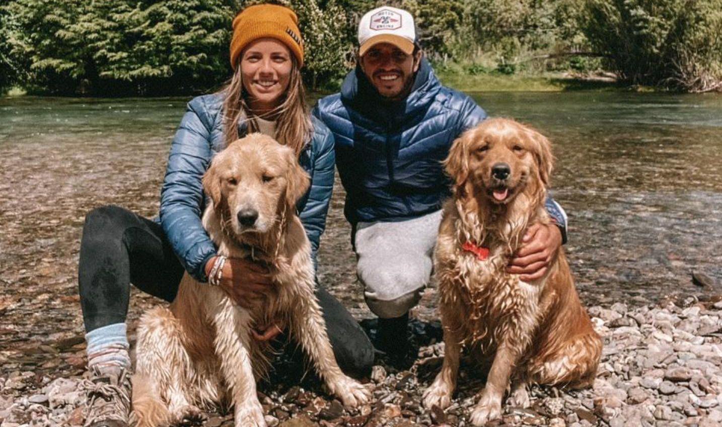 Sus amores. Agustín junto a su novia Lala y sus perros. El hockista es un apasionado por los perros.