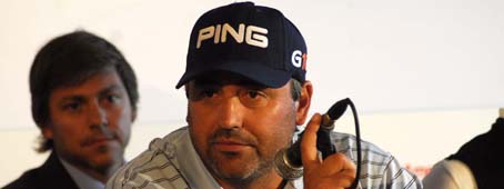 "Pato" jugó por primera vez, como el único latinoamericano ganador de dos Majors. Su salida fue junto a su hijo Ángel, el embajador indio Viswanathan y Diego Madotta.