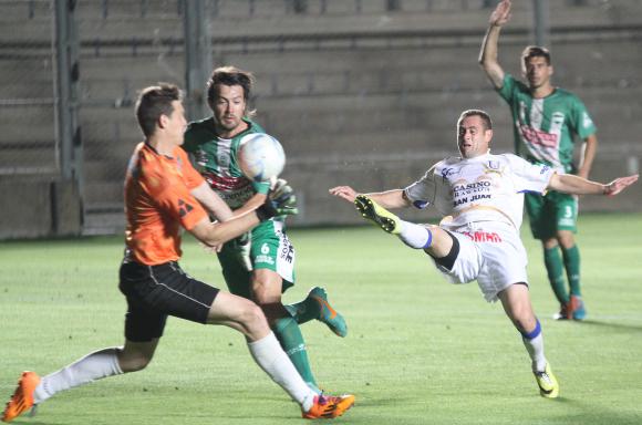 Unión de Sunchales salió hacer su negocio desde el comienzo. El Verde se paró bien y teniendo a Matías Rojo y Patricio Escott como las grandes figuras, supo resolver el pleito. Al Unión sanjuanino le costó acomodarse en la cancha y recién sobre los 20’ el Azul comenzó a llegar pero con poca claridad. Hernán Muñoz metió un centro de tiro libre, en el rebote otra vez le quedó a Muñoz, pero el ex Trinidad decidió darle al arco y su remate se fue desviado. El trámite del partido pasó a ser de ida y vuelta y a los 24’, el “Guary” González encaró por el sector derecho y el Luto Molina metió un centro que el “Bibi” González -solo por el centro del área- no pudo conectar. Era una gran chance para Unión pero no supo aprovecharla. Ahí no más Sunchales aprovechó un contragolpe y un centro de Rojo que no pudo despejar bien Franco, encontró a Escott solo y sin marca para poner el 1-0. El Azul, empujado por el aliento de su gente que anoche sí concurrió en buen número, fue y fue. A los 28’ otra vez el “Bibi” González tuvo el empate en sus pies, el delantero en el punto penal remató por encima de Viotti pero la pelota besó el travesaño y se fue afuera. El de Villa Krause era puro intento pero con esa voluntad y los fallos arbitrales del cuestionado santiagueño Francisco Acosta, no podía. Para colmo, a los 42’ otra vez el Azul sufrió una contra fatal, porque Escott volvió a ganarle el mano a mano a Martinelli y encaró al área, quedó cara a cara con Lucero y definió cruzado para poner el 2-0 que a esa altura resultaba exagerado. Quedó tiempo para un nuevo intento del local, porque tras una serie de rebotes en el área González convertía pero el árbitro anuló por falta sobre Viotti.