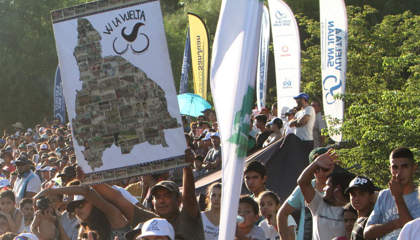 Ponía la piel de gallina ver a tanta gente en el anillo de la Avenida de Circunvalación. Familias enteras participando de un espectáculo que a los sanjuaninos atrapa. Y, así, como los ciclistas corren su vuelta pedaleando casi 1.000 kilómetros, los dirigentes montando todo lo organizativo y los medios de prensa transmitiendo o publicando todo lo que acontece en la carrera; la gente la hace suya de distinta forma. Algunos alentando, otros ornamentando los caminos con banderas y muchos haciendo carteles. Están los afiches hechos en reconocimiento a la tarea de los pedalistas, pero también aquellos curiosos y simpáticos, como el de este señor que se tomó el trabajo de hacer un mapa de San Juan con recortes de fotos de DIARIO DE CUYO. Él también ganó la Vuelta. Su Vuelta.
