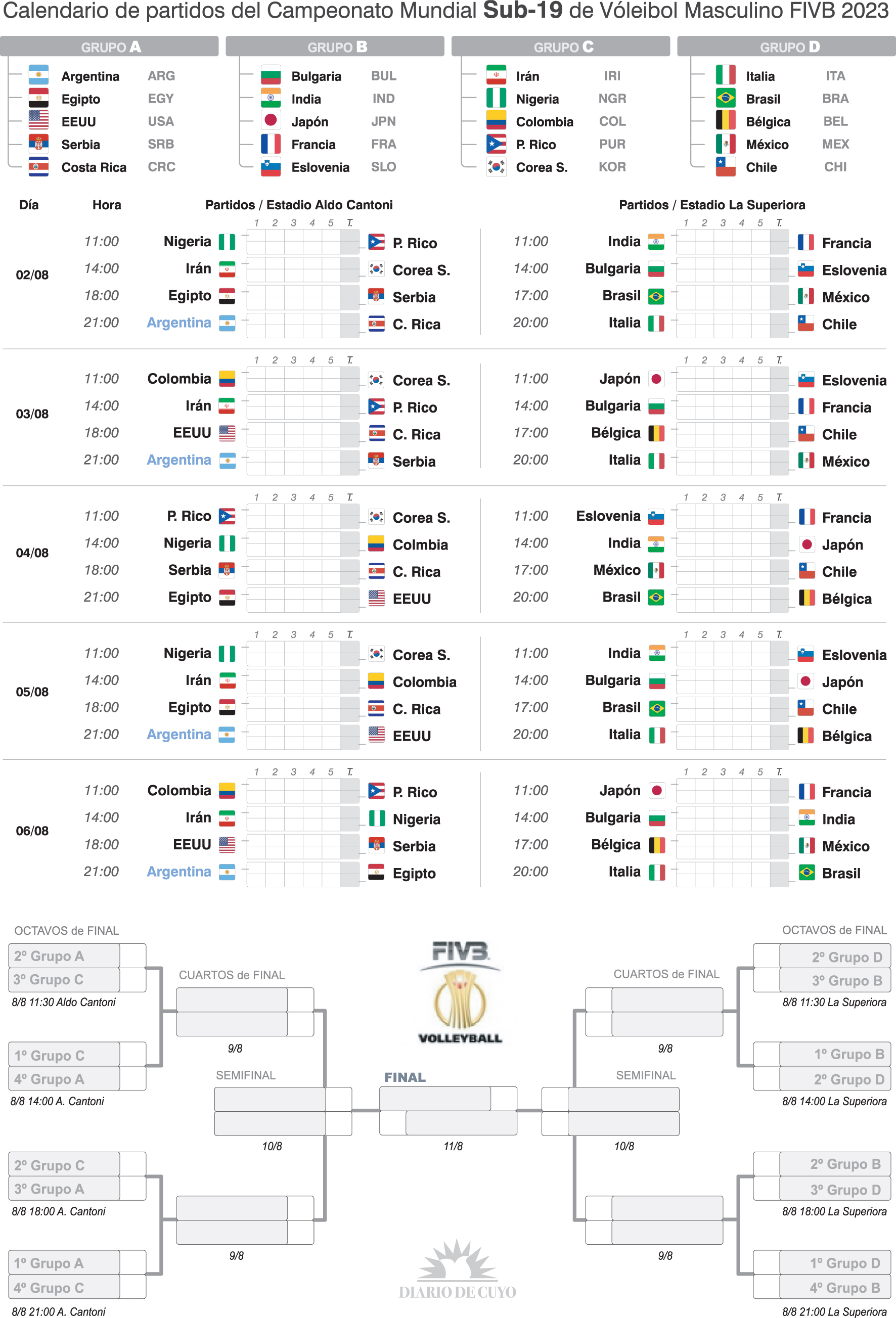 Calendario de partidos del Mundial Sub-19 de Vóleibol Masculino FIVB 2023