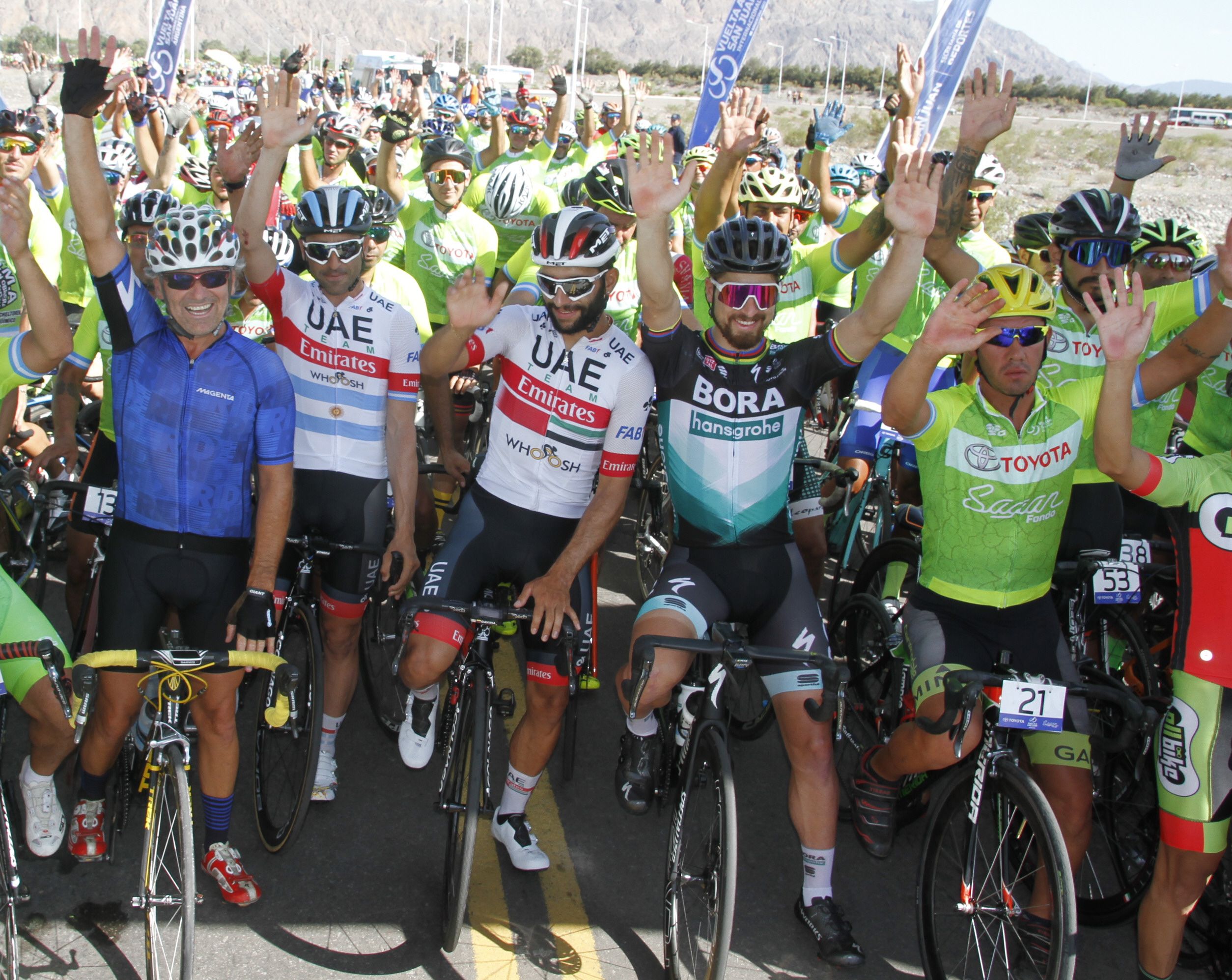 El colombiano Fernando Gaviria, que marcó un nuevo récord en la Vuelta Internacional a San Juan en Valle Fértil, sumando su séptimo triunfo contando todas las ediciones que participó de la prueba sanjuanina, recibió el cariño de la gente. El representante del UAE Team Emirates fue otro que encabezó el podio de los más requeridos a la hora de las fotos, si bien no tiene quizás el mismo carisma que Sagan, Gaviria accedió al pedido de los fanáticos. Fue él quien junto a Maxi Richeze tuvieron un enorme gesto la semana pasada cuando previo a la presentación de equipos y mientras entrenaba por calle Las Moras junto al equipo, desafiaron a unos pequeños ciclistas a embalar. Los chicos que corren en una escuelita de ciclismo de la provincia, sprintaron junto a Richeze y Gaviria y dejaron una postal que esos chicos jamás se olvidarán. El ciclista, que ya descartó ganar la Vuelta, se preparará después de San Juan para ser protagonista en la Vuelta a Colombia 2.1.