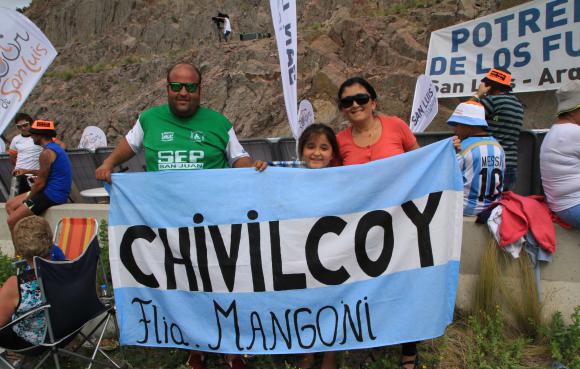 Sabido es ya, y varias veces reflejada, la amplia convocatoria de sanjuaninos observando el Tour de San Luis. Además de hacerse notar al costado del camino con sus banderas identificándose, ayer en la etapa contrarreloj se pudieron observar varias familias oriundas de San Juan con camisetas de fútbol de la provincia o incluso, hasta camisetas del Sindicato Empleados Públicos, pero en este caso no de San Juan, sino de Buenos Aires. Este último es el caso de Martín Mingoni, más conocido por los integrantes del equipo de los bichos verdes como ‘Soplete‘. Él, junto a su esposa María Rodríguez y sus hijos Sara y Máximo, viajaron desde la localidad de Chivilcoy para apoyar al equipo de amigos desde el lunes pasado y hasta que finalice el Tour en la jornada de mañana. En tanto que ayer, en plena Avenida Eva Perón, las camisetas de Unión y San Martín se hicieron presentes, demostrando una vez más que el fútbol sanjuanino también se vive en las vecinas tierras puntanas.