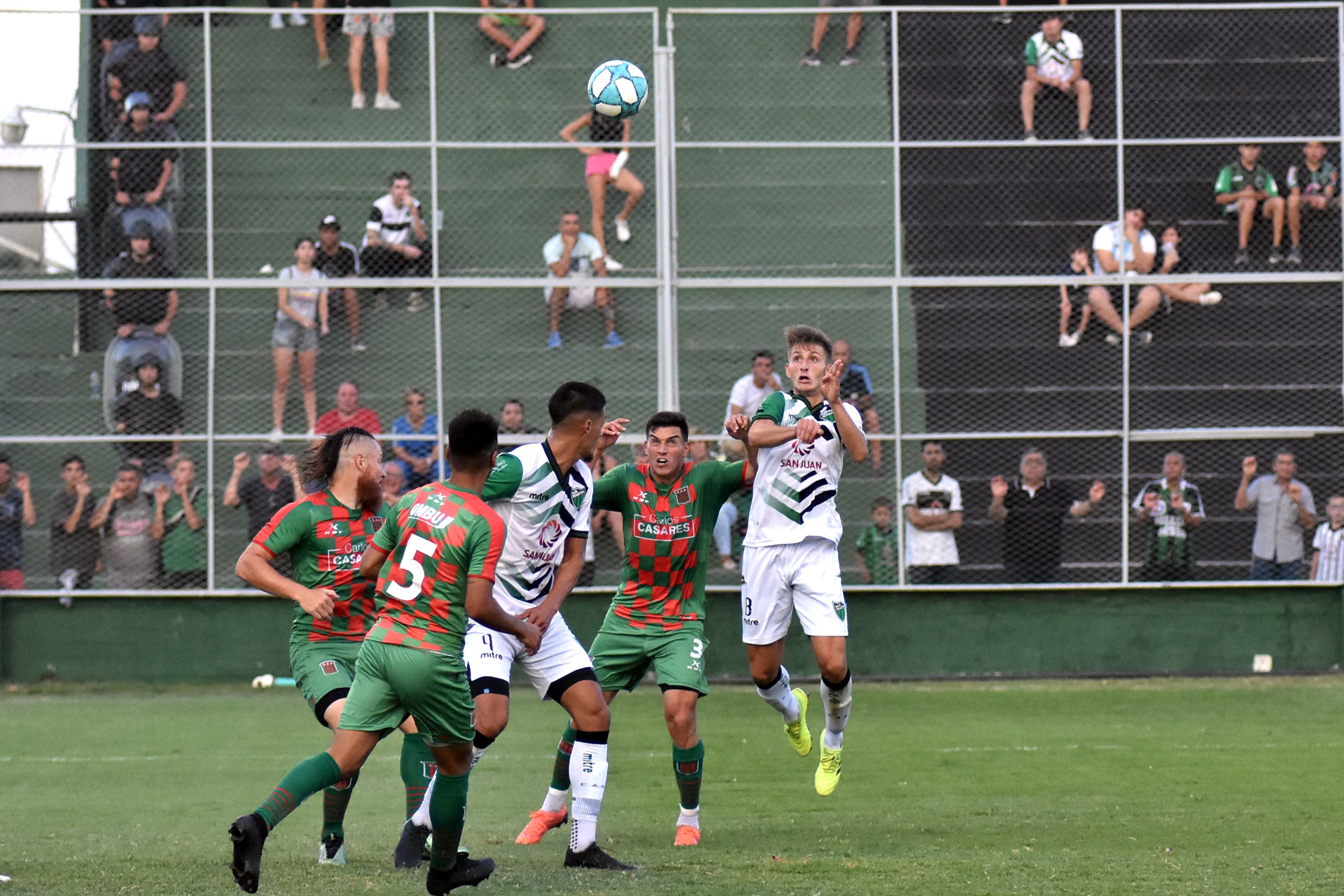 Aire. La jugada es aérea y por esa vía también buscó San Martín ayer. El Verdinegro sumó una victoria vital y trata de prenderse entre los de arriba.