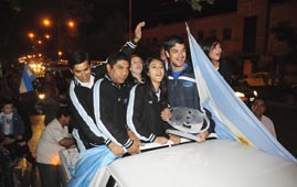 Y luego de tanto llanto, sobre las 20.30, partió la caravana desde el aeropuerto para hacer su primer escala en Rawson y 9 de Julio. Allí todos los campeones se subieron a una camioneta, se sumó más gente para acompañarlos y el destino fue la Plaza 25 de Mayo, el punto neurálgico para cualquier festejo. Fueron cuatro vueltas a puro salto, grito, el aplauso de la gente, y una caravana con autos que daba la vuelta a la plaza.