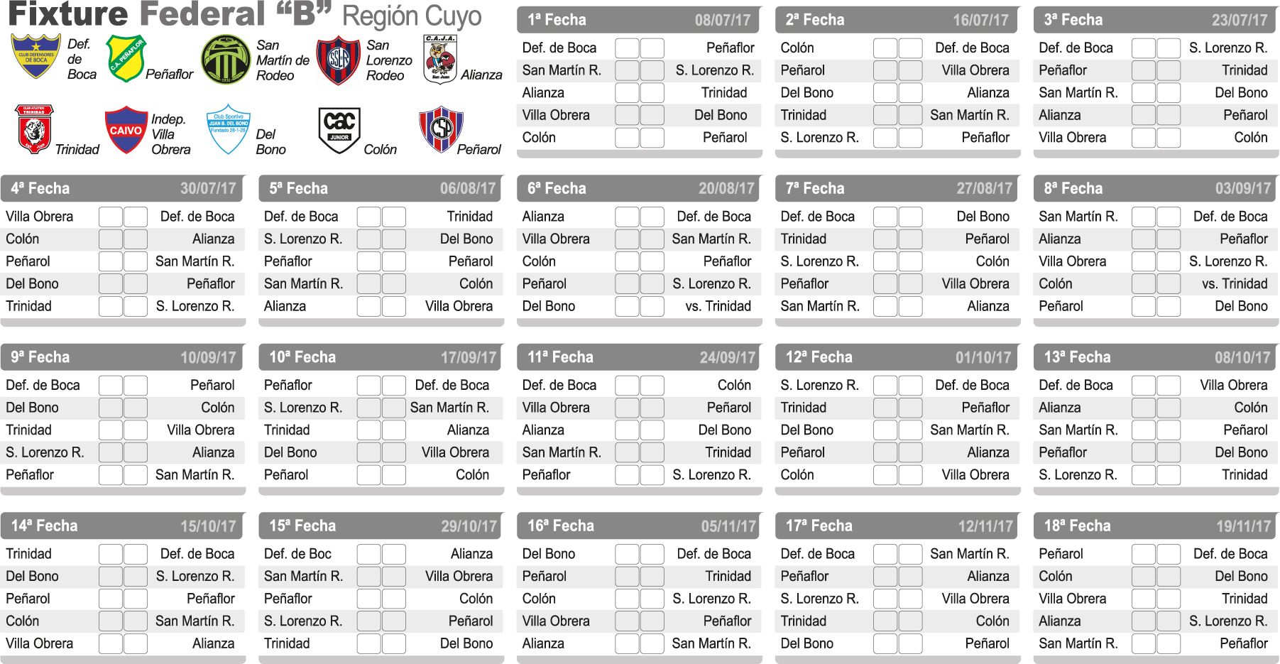 Ocho meses. Doscientos cuarenta y dos días. Mucho, sí, demasiado tiempo sin actividad. El Torneo Federal “B” dio a conocer ayer el formato de disputa y fixture que tendrá en esta edición 2017 y que tendrá por primera vez a diez equipos sanjuaninos que buscarán desde el sábado 8 por los cuatro ascensos que pondrá en juego.