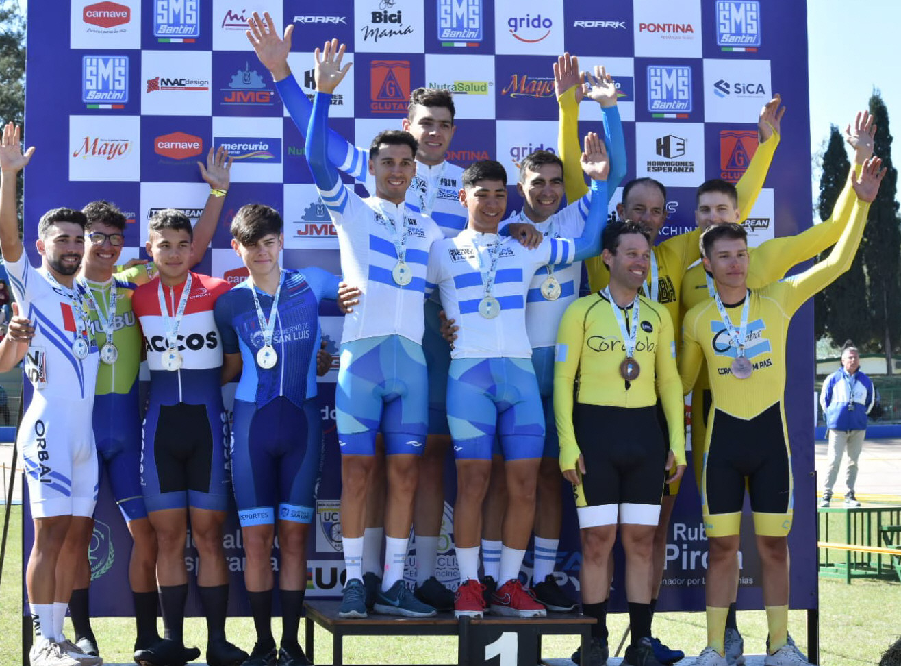 La victoria de la persecución por equipos fue la primera medalla dorada conseguida por los pedalistas de la casaca azul. El experimentado Rubén Ramos, posiblemente el pistard más completo del país; integrante de 8 de las 13 cuartetas que ganaron títulos; Nicolás Tivani, un fenómeno, que gana en la ruta, la pista y la montaña; acompañados por Rodrigo Díaz, debutante en el equipo y ganador del oro en las dos últimas vueltas puntuables sub-23, y Santiago Sánchez, un persecusionista excepcional, que ayer sumó su tercer oro consecutivo en la prueba, fueron contundentes. En la clasificación de los cinco equipos participantes hicieron el mejor tiempo, 4m42s, superando por 2s a ACINPROBA (4m44s) y en la final contra la cuarteta integrada por Marcos Méndez, Alejo Betique, Fabricio Crozzolo y Agustín Ferrari; fueron regulando el ritmo de acuerdo a lo que hacía el rival y cuando apretaron les sacaron media recta, y se impusieron por más de 3 segundos.