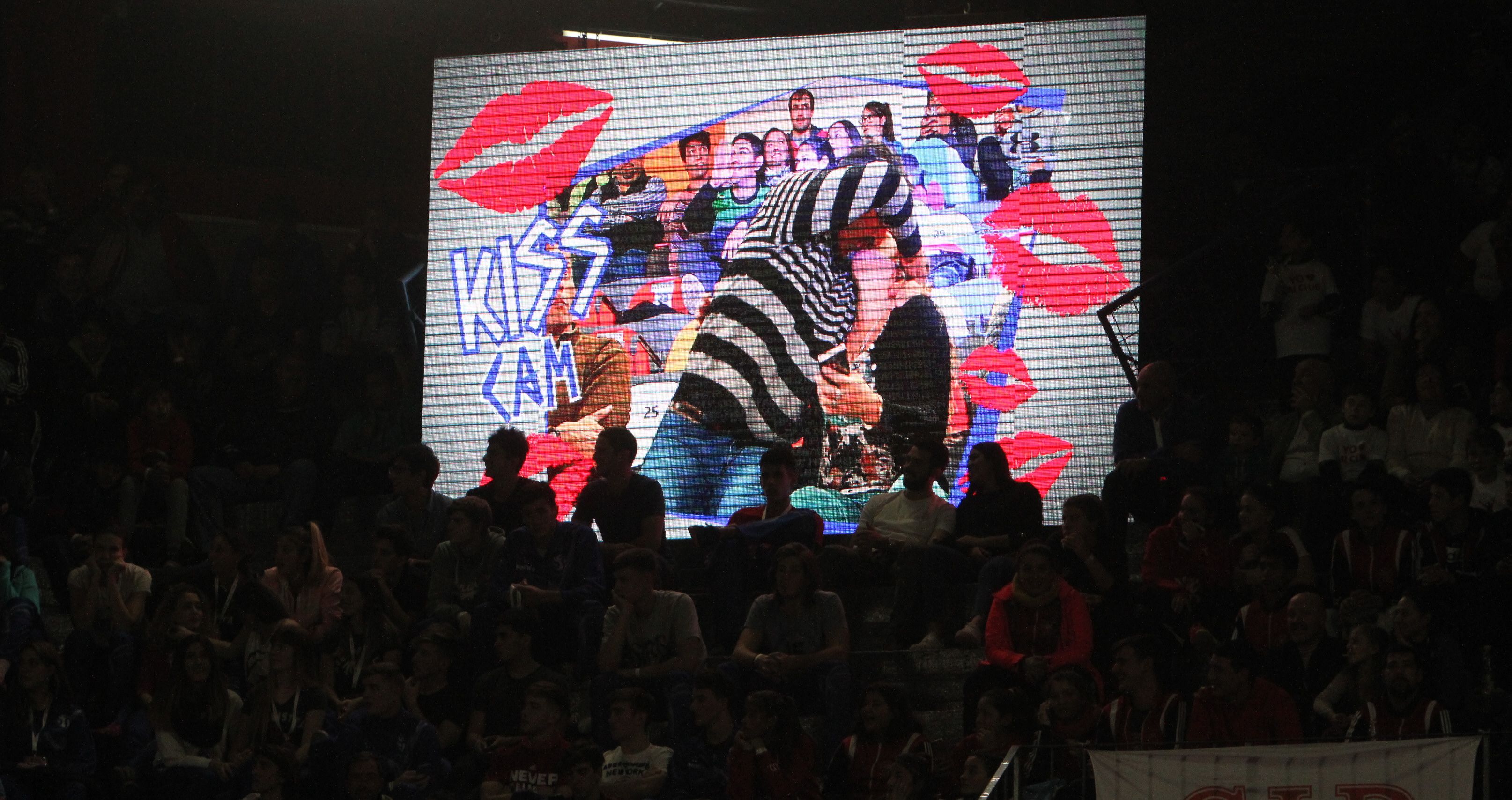 "Beso a beso…". Como el tema popularmente conocido, la "kiss cam" incentivó a las parejas que enfocó a darse un beso y que lo viera todo el Cantoni.