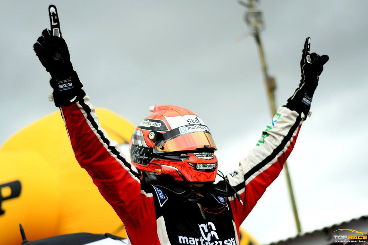 Dominador. Agustín Canapino celebra con las manos bien en alto una nueva consagración en el Top Race V6. Al igual que en la temporada anterior, definió el título en la última prueba del año.
