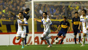 La falta de experiencia en los protagonistas paraguayos benefició al juego del "Xeneize". El ejemplo más claro se produjo a los siete minutos, cuando la visita tuvo un tiro de esquina a su favor y Andrés Chávez se aprovechó del contragolpe. El ex Banfield se adueño del balón y chocó contra los centrales rivales, para quedar mano a mano frente a Antonio Franco Arza, quien evitó la caída de su valla gracias a su rápida salida.
