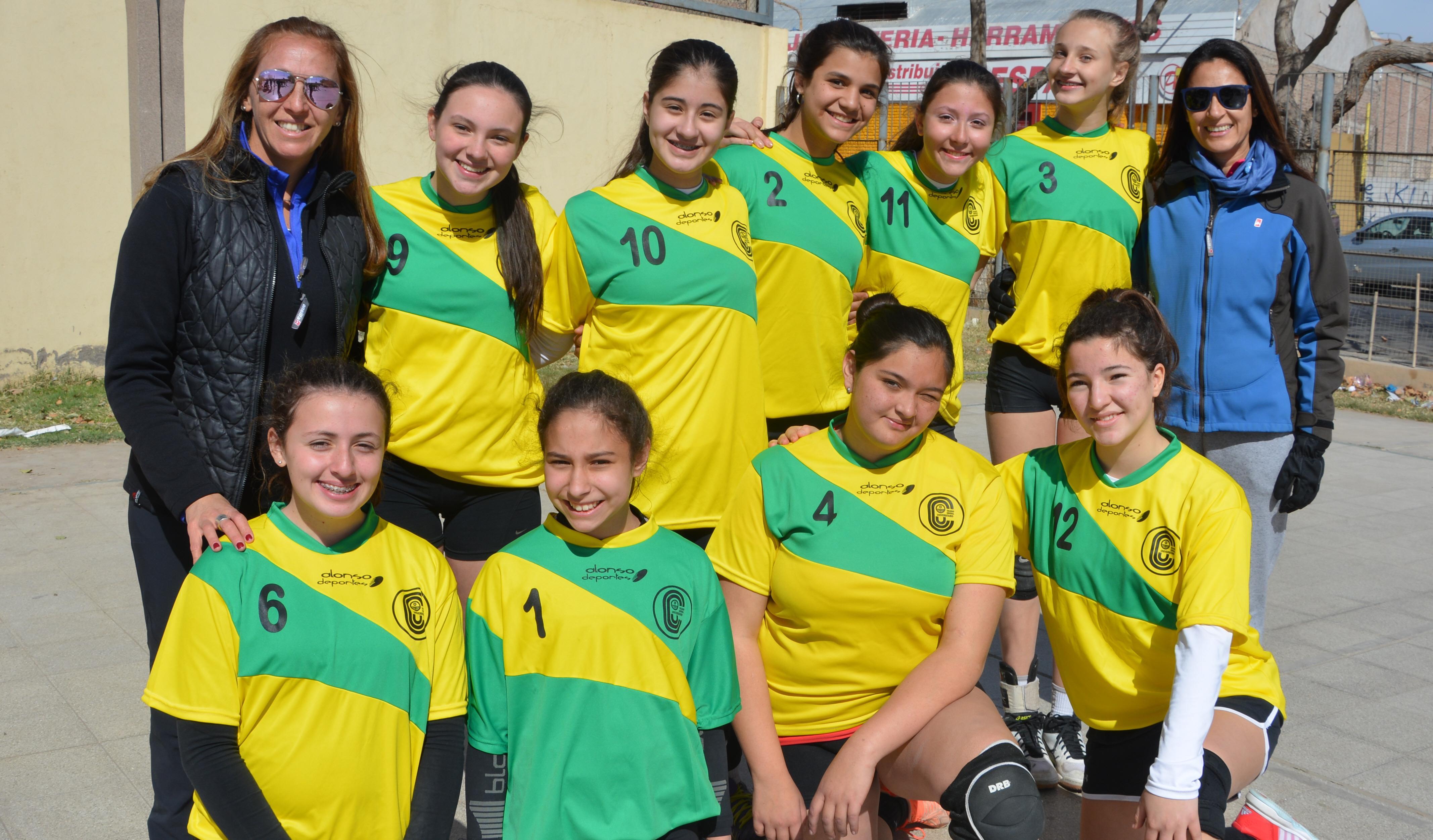 Col. "Central Universitario", las chicas de la categoría Sub-14 del deporte vóleibol que participaron ayer en Capital. Están junto a sus profes: Liliam Masseo, Carolina Soto y Analía Velárdez.