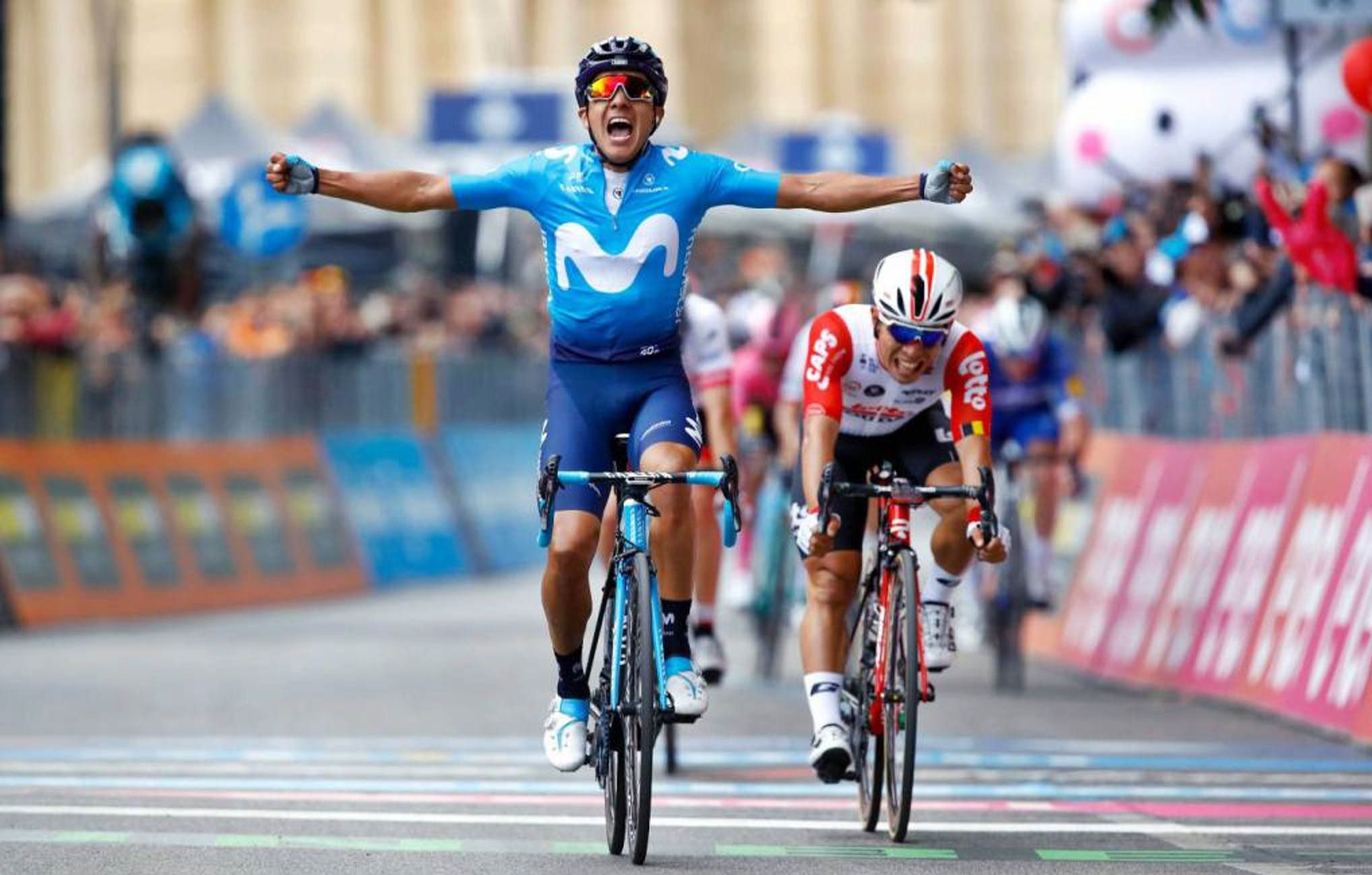El ecuatoriano que fue sexto en la Vuelta a San Juan, hace tres meses, ganó la cuarta etapa de la Corsa Rosa que sigue liderando el esloveno Roglic.