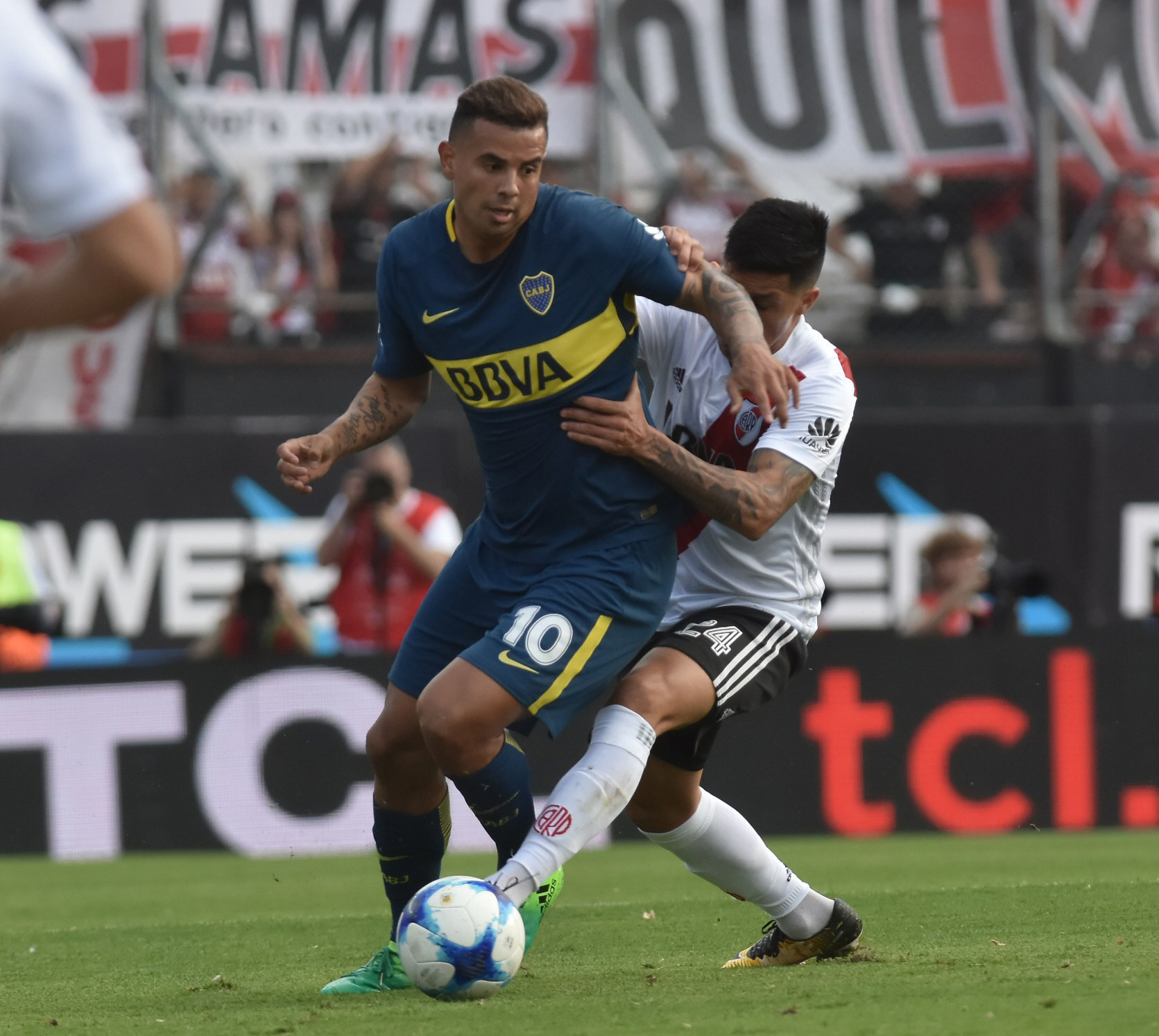 El talentoso colombiano de Boca Edwin Cardona tuvo un estreno en el superclásico de manera muy especial. Es que por un lado convirtió la apertura del marcador con un exquisito tiro libre de derecha, haciendo recordar al que marcó en ese mismo arco Juan Román Riquelme en el 2000. Antes de esta jugada clave en el superclásico, al propio diez le había cometido una fuerte infracción Ignacio Fernández (planchazo en el pecho), quien fue expulsado. Pero luego y en contrapartida, vio la tarjeta roja de manera injusta en el complemento por un supuesto codazo al volante Enzo Pérez.