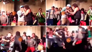 Buenos Aires, 10 de julio.- Durante sus vacaciones, Carlos Tevez asistió a un recital de la Mona Jiménez en Córdoba que terminó con un imperdible blooper. Es que mientras ‘cuarteteaban’, perdieron el equilibrio y terminaron en el suelo.