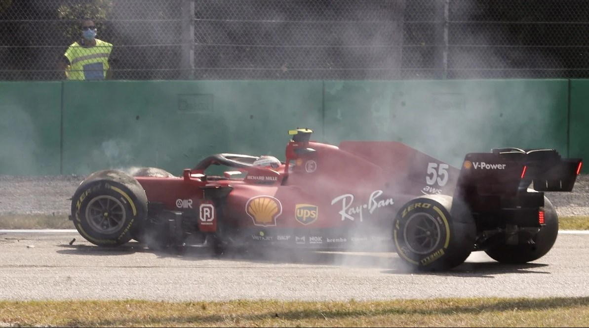 El piloto español Carlos Sainz sufrió hoy un accidente con su Ferrari en los entrenamientos libres del Gran Premio de Italia de Fórmula Uno que se celebrará en el circuito de Monza, sin daños para el piloto pero con mucho trabajo para los mecánicos de la escudería debido a que el coche quedó en muy mal estado.