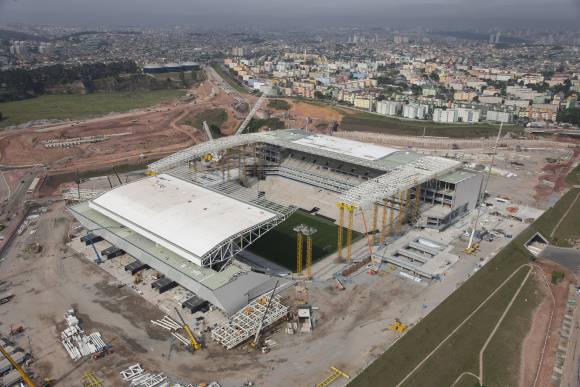 A menos de dos meses para el partido inaugural de la Copa del Mundo entre Brasil y Croacia el 12 de junio, el Arena Corinthians todavía no está terminado.
