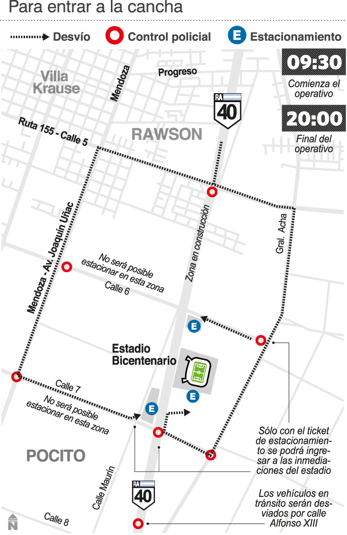 A su vez, fueron dispuestos dos predios para estacionamiento, extras al del estadio, pero que tendrán un costo (no informado aún).