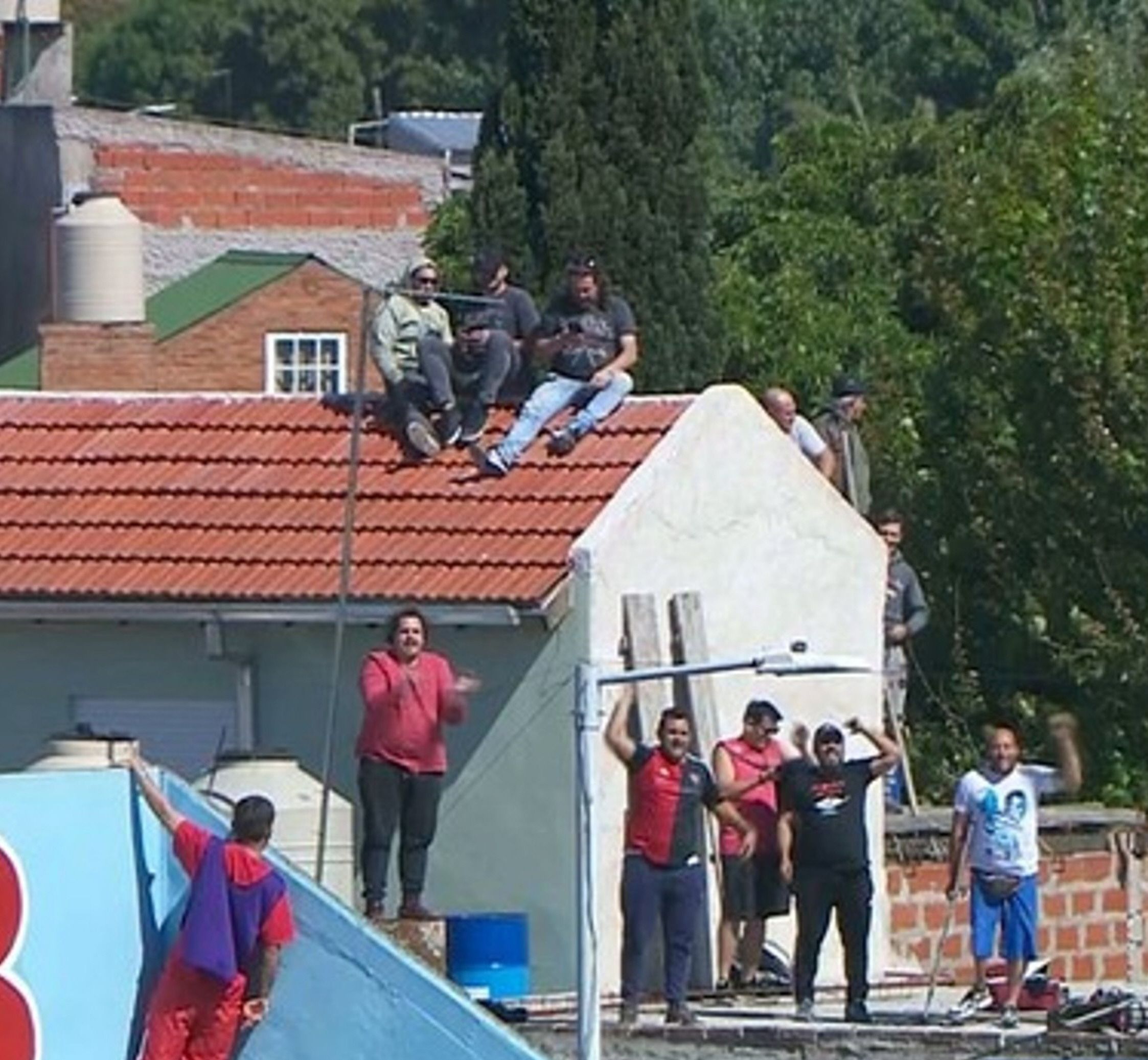 Unos grupúsculos de hinchas de ambos equipos lograron subirse a las terrazas de casas linderas al estadio de Arsenal, sobre la calle Morse, por lo que cada uno pagó 1.000 pesos por el "alquiler". Y desde allí alentaron a sus equipos hasta que fueron divisados por la policía (pese a jugarse sin público hubo un estricto control de seguridad) y los desalojaron.