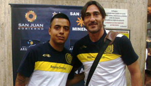 Fernando Barrientos y Mauricio Caranta en la llegada de Central a San Juan.