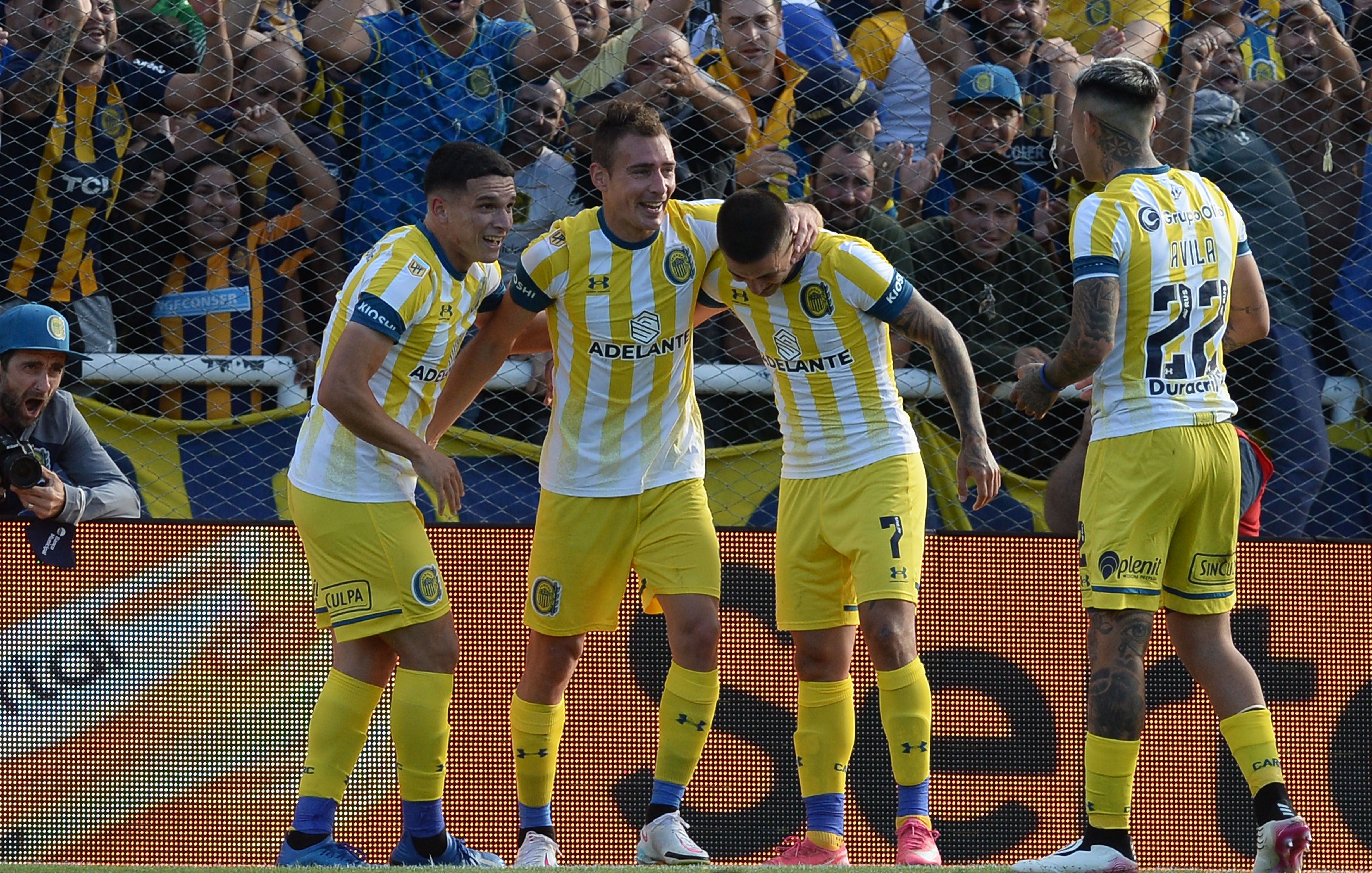River estrenó su título de la Liga Profesional con un emotivo empate en dos goles en el encuentro jugado en el Gigante de Arroyito, por la 23´ fecha del torneo, donde Marco Ruben, quien se erigió en el mayor goleador de la historia del local, marcó un gol en cada etapa y Agustín Palavecino empató con dos tantos desde fuera del área en el complemento. Central jugó mejor en el primer tiempo porque atacó y presionó en el mediocampo cada vez que pudo, aun a riesgo de exponerse a los peligrosos ataques de River. El local se acercó con remates desviados de Gino Infantino y Francesco Lo Celso, pero River respondió a los 23" con un derechazo de Braian Romero desde la derecha del área que pasó muy cerca del primer palo, tras ser desviado por Emmanuel Ojeda. Hasta que a los 27" Emiliano Vecchio -la figura del primer tiempo- tiró una pared con Lautaro Blanco por la izquierda, llegó al fondo, le metió un caño a Paulo Díaz y asistió con maestría a Marco Ruben, quien definió con un taco de zurda de antología, que pasó entre las piernas de Franco Armani y abrió el marcador, para erigirse, además, en el máximo artillero de la historia de Central, junto al "Torito" Waldino Aguirre, con 98 tantos.