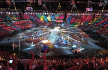 Los deportistas de todo el mundo vivieron la fiesta al pie del escenario, cuatro pasillos cruzados hacia los costados y los extremos del campo de juego que simbolizaron la bandera británica y, como el público, se emocionaron con los videos que revivieron los mejores momentos de la competencia y con la presencia del guitarrista y el baterista de Queen, Brian May y Robert Taylor, que hicieron en vivo "Nosotros te conmoveremos". Antes, la imagen del cantante de Queen, Freddie Mercury, en las pantallas gigantes del estadio sacudió los recuerdos.