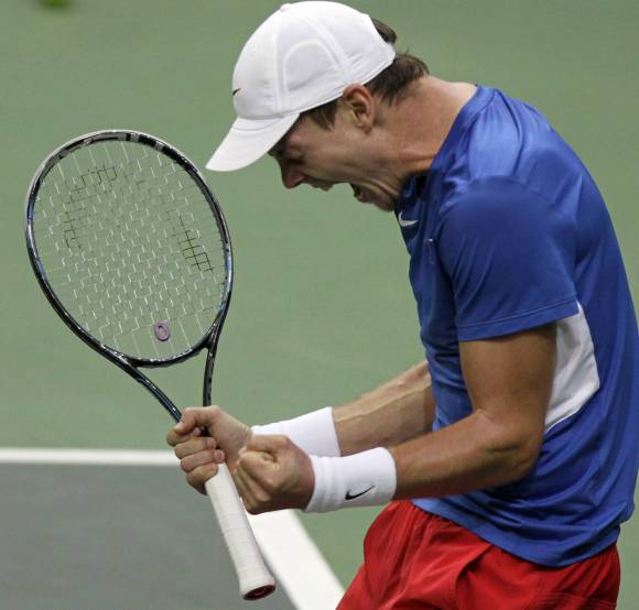 Pero a continuación, Tomás Berdych sexto del ranking mundial, consiguió la igualdad con un trabajoso triunfo sobre Nicolás Almagro por 6-3, 3-6, 6-3, 6-7 (5) y 6-3. Luego del desgastante encuentro, Berdych sostuvo que “estuve casi siempre arriba, tuve muchas oportunidades en el cuarto set y por unos pocos detalles perdí este parcial, pero siempre estuve por delante” y agregó “la gente nos han dado una energía extra, y es una sensación especial jugar enfrente de ellos”. Mientras que el capitán de España, Alex Corretja, sostuvo que “David (Ferrer) ha hecho su trabajo y Nico (Almagro) también, ante un rival muy difícil de poder ganarle aquí. El 1-1 era lógico dentro de lo que cabe. No podíamos pretender un 2-0 aunque hemos estado más cerca de lo que parece. Ha habido un desgaste que también cuenta.