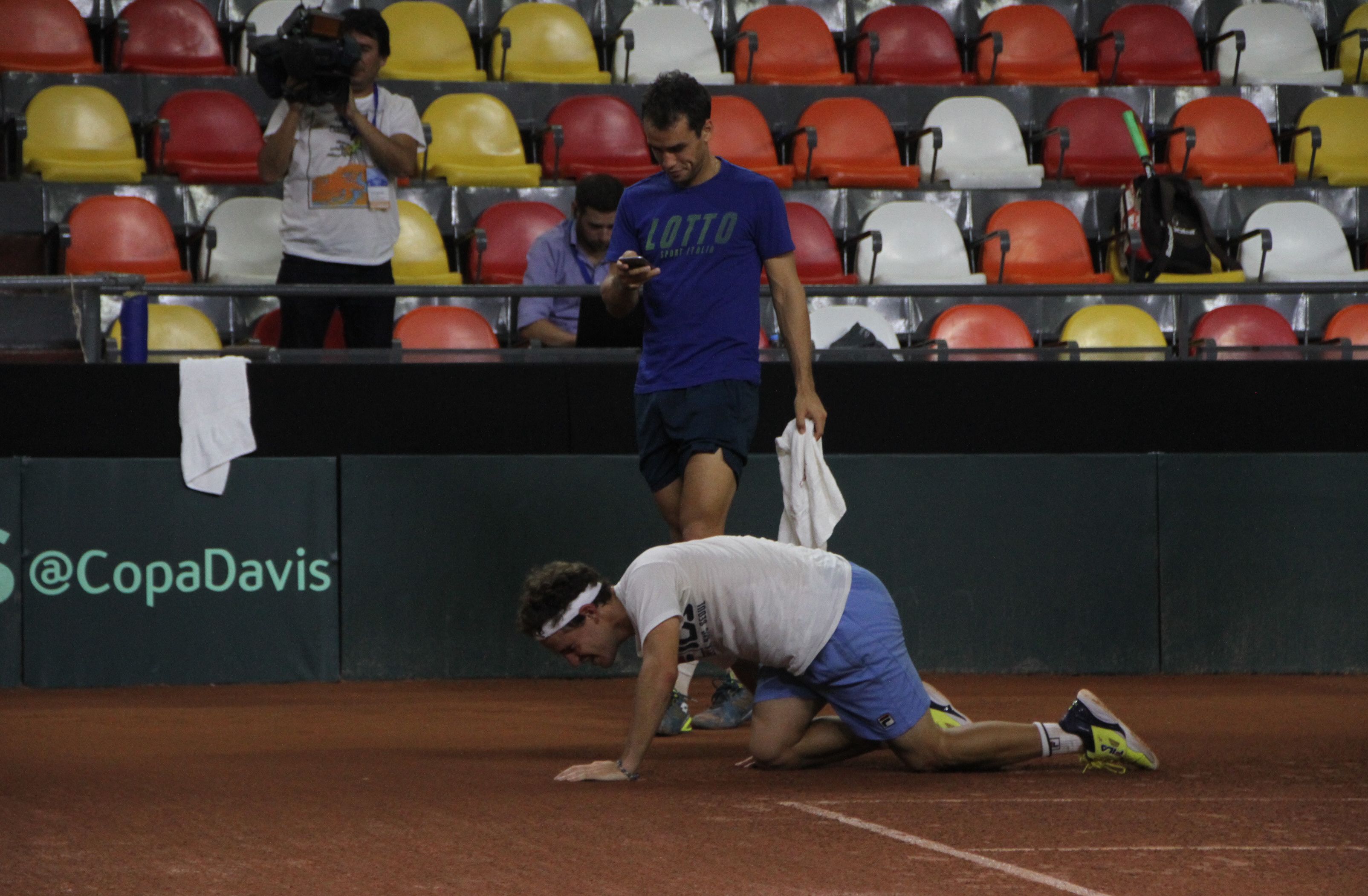 Curiosidad. Tras la práctica argentina, Schwartzman debió pagar una apuesta con Kicker
