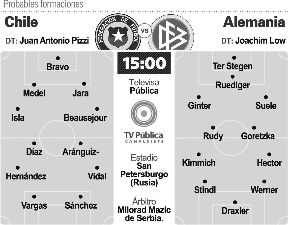 El seleccionado de fútbol de Chile, que atraviesa el mejor momento de su historia tras haber obtenido en forma consecutiva las dos últimas Copa América, en 2015 y 2016, ambas veces con entrenadores argentinos, enfrentará hoy a Alemania (15 horas), el actual campeón del mundo, que en esta ocasión apostó a jugadores jóvenes, en la final de la Copa Confederaciones que se desarrolla en Rusia.