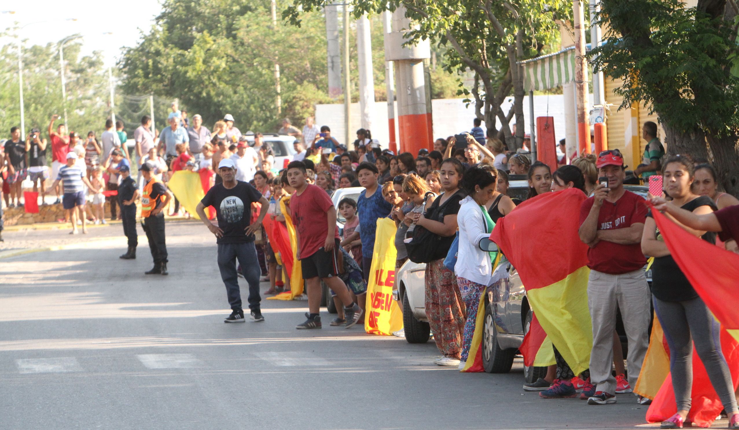 El tema es que ayer, como estaban en, “su Chimbas”, sacaron a relucir todo su arsenal de banderas y en cada esquina del circuito o en los cruces principales se veían jóvenes y niños ataviados con las remeras rojas con vivos amarillos y grandes banderas que necesitaban de una veintena de personas para sostenerlas.
