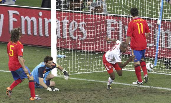 Corrían 7 minutos del segundo tiempo en Durban, cuando Gelson Fernandes, un suizo nacido en Cabo Verde, introducía el balón en el arco de Iker Casillas tras una confusa jugada. Ottmar Hitzfeld, el entrenador suizo, lo había puesto para defender, pero terminó convirtiéndose en el verdugo de España y en el jugador del partido que entró ayer en la leyenda del fútbol suizo al lograr el gol que marcó la primera victoria (1-0) sobre España en toda la historia, en el debut del Grupo H.