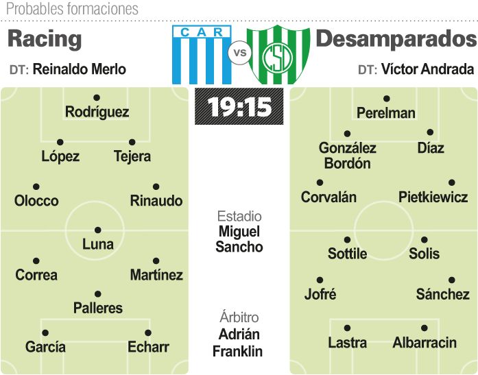 En lo deportivo, Desamparados llega más que entonado tras su triunfo de entresemana ante Juventud Unida, jugando tal vez su mejor partido en todo el certamen. Puntero, ganador, el equipo de Andrada solamente tendrá una modificación y será el regreso de Leonel Pietkiewicz en el lateral izquierdo en lugar de Ramella quien jugó ante la Juve puntana. El resto, igual. Repitiendo el mediocampo con Jofré, Sottile, Solis y Sánchez, más la dupla ofensiva con Lastra y Albarracín. Sin misterios, apostando a la solidaridad en todas sus líneas, Desamparados intentará salir bien parado contra un rival que perdió tiempo y puntos en la primera rueda pero que ahora con Merlo al frente, empezó a recuperarlos. Mostaza repetirá la misma alineación que antes de la fecha libre metió un triunfo en San Luis.