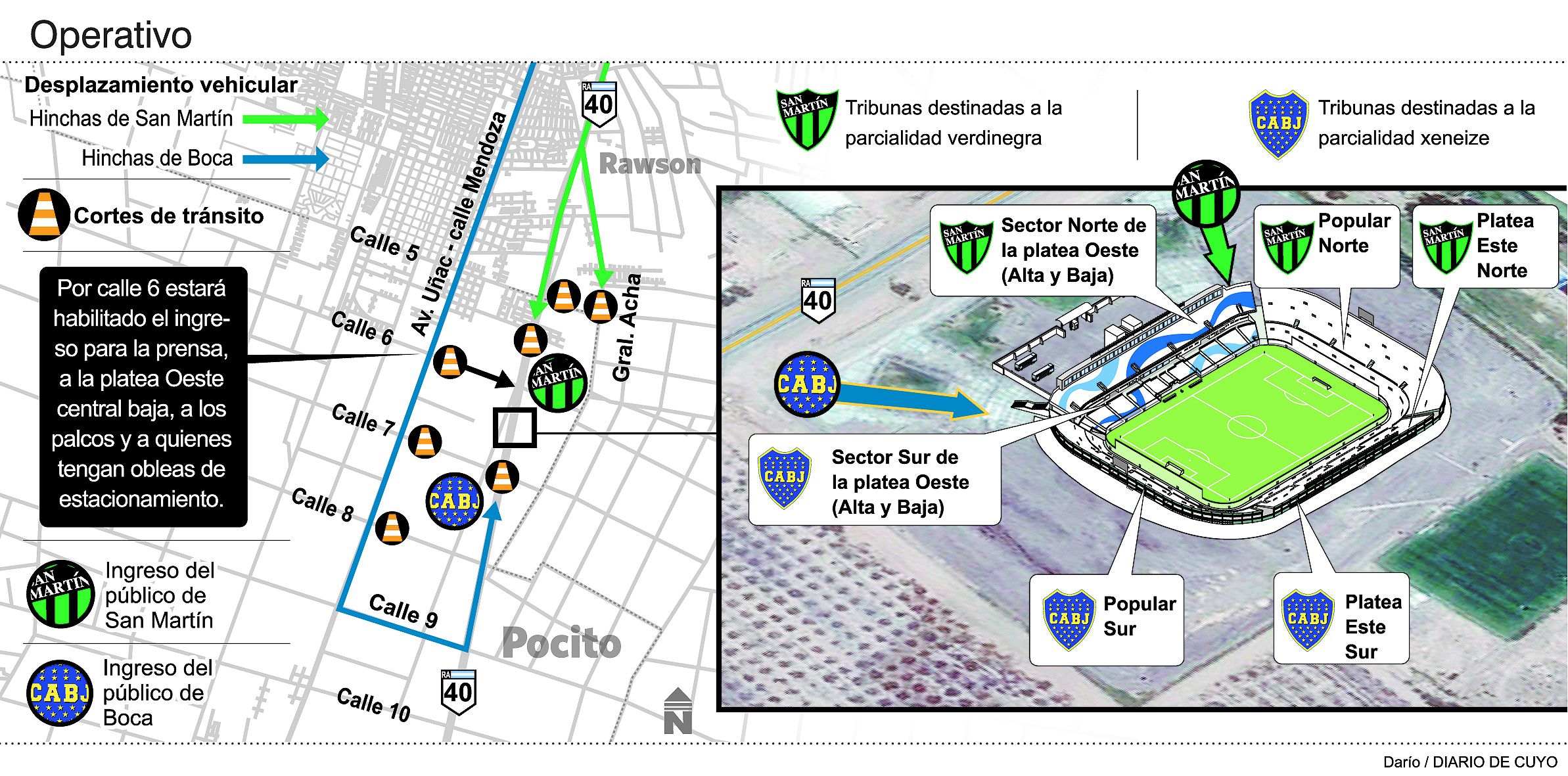 Boca viajará a San Juan en vuelo chárter para arribar poco después del mediodía y regresará a Buenos Aires por la misma vía, tras la finalización del encuentro. El plantel que orienta Barros Schelotto se hospedará en el Hotel Del Bono Park.