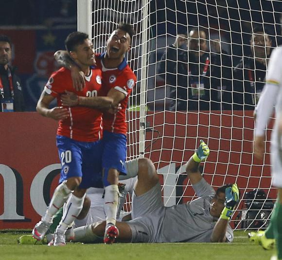 Chile empleó al máximo su poderío y terminó consiguiendo otros dos gritos para desencadenar la euforia del público. A los 20 del segundo período, Angelo Henríquez desbordó por derecha y con un centro rasante que superó al arquero asistió a Aránguiz, quien sólo tuvo que empujarla. Y a los 34, la perla del encuentro, una triangulación que culminó con un pase cuchareado por Valdivia para Medel y una definición exquisita, de emboquillada ante el achique del arquero. Paradójicamente, en el día en que consiguió una sorprendente clasificación, Bolivia sufrió el partido, que culminó de la peor manera, con un gol en contra de Raldes tras un buscapié de Angelo Henríquez, a los 41. Así, Chile se adjudicó el grupo y espera rival para medirse el miércoles próximo en Cuartos de final ante el mejor tercero.
