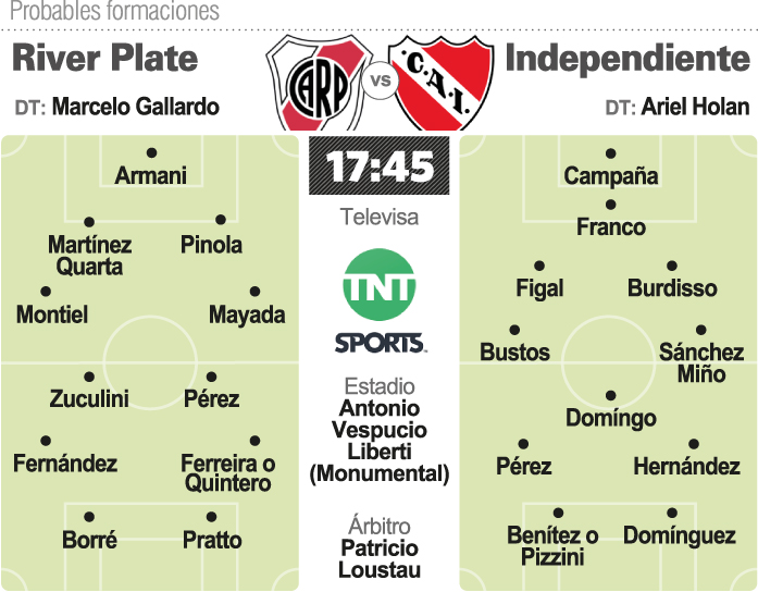 River recibirá a Independiente en uno de los clásicos más tradicionales de la historia del fútbol argentino y en el cual los dos equipos necesitan ganar para fortalecer e incrementar las chances para alcanzar un lugar en la Copa Libertadores de 2020.