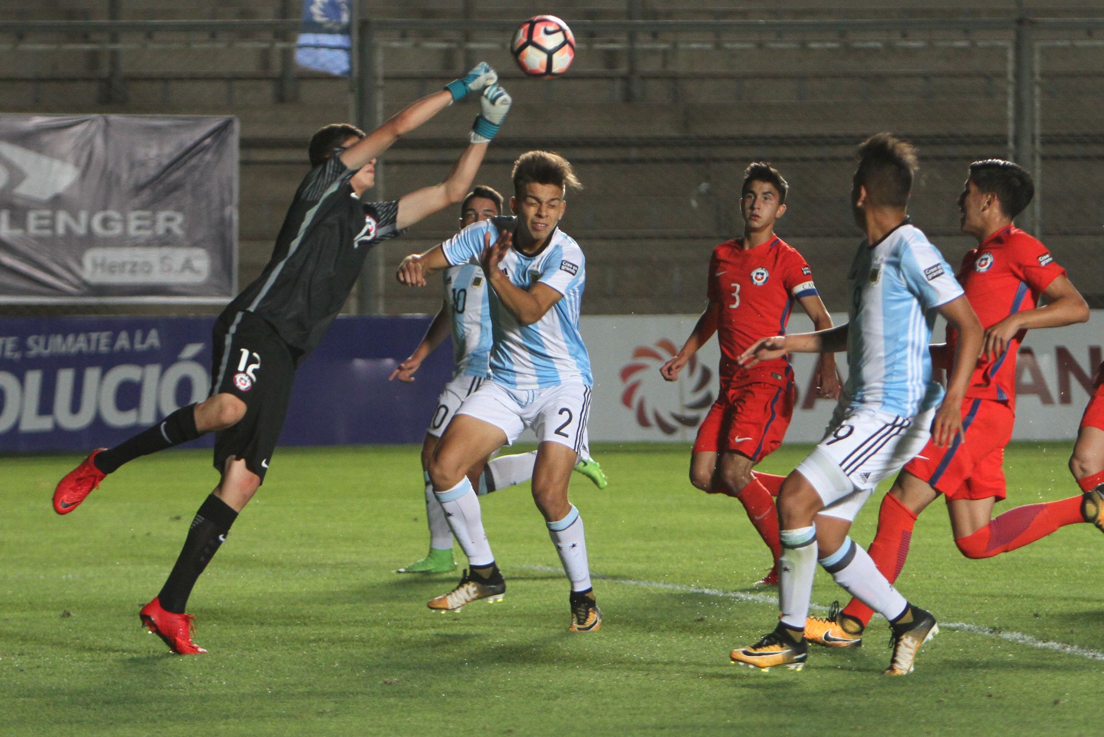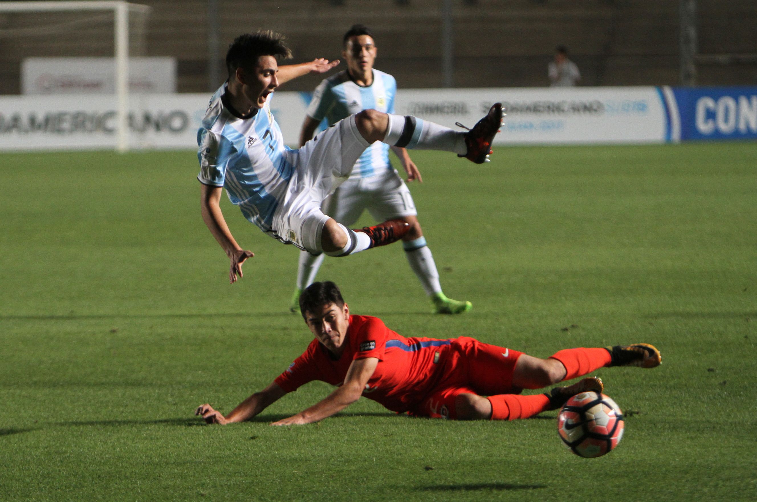 Chile sorprendió a los 7″ cuando Cristóbal Muñoz quedó mano a mano con Rocco Ríos, pero el duelo lo ganó el arquero argentino. La Albiceleste tomó la posta y a los 12″ no lo desaprovechó. Tras un córner, Ayala bajó la pelota en el área y tras el rechazo de los chilenos, Francisco Flores remató y puso el 1-0.